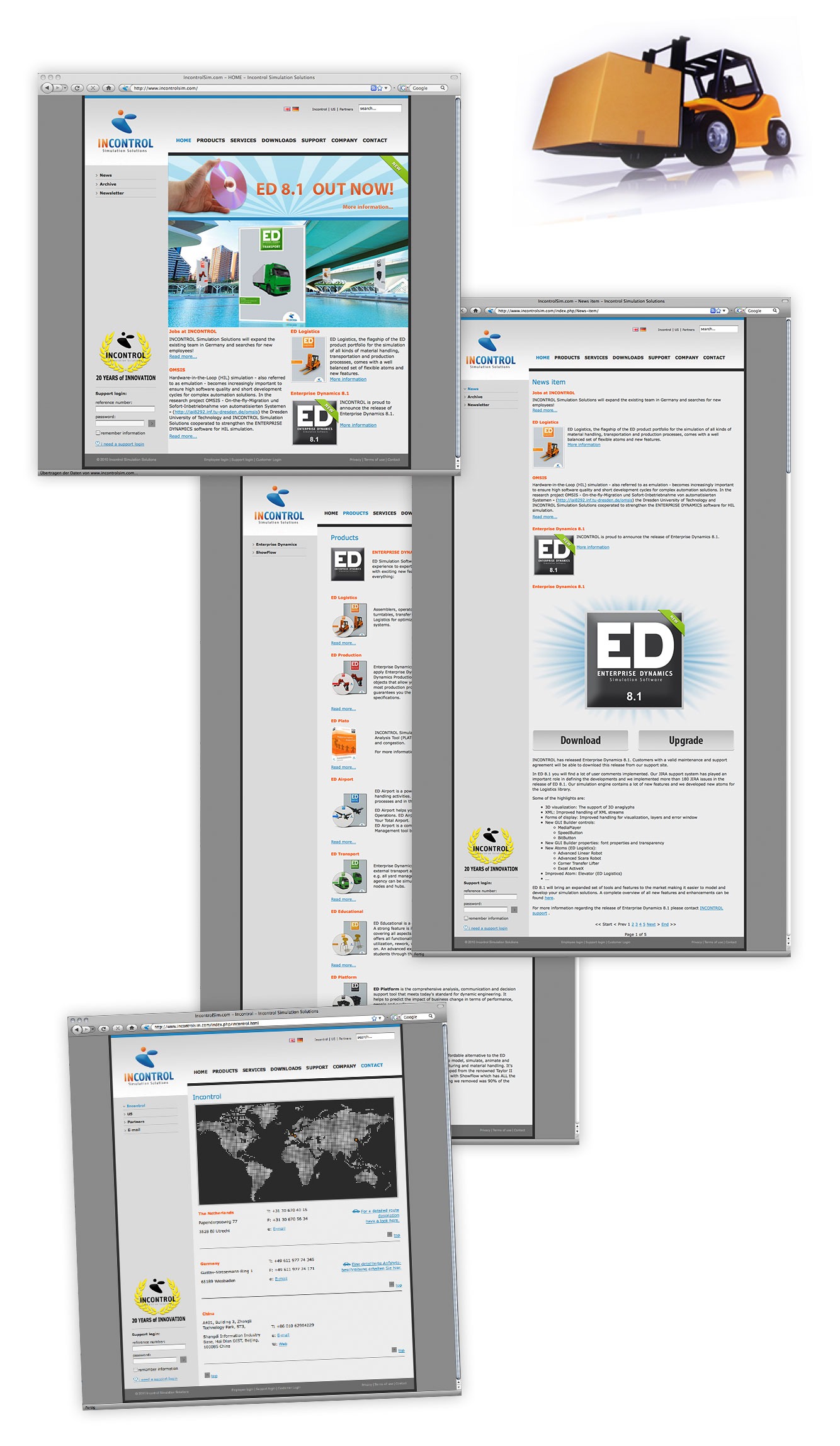 »Gateway to the Future!« Das Software Unternehmen Incontrol Simulation Solutions entwickelt Optimierungsprozesse für die Bereiche Bildung, Logistik, Transport, Produktion, Automobil und für Flughäfen. Ziel des Unternehmens ist es, Kunden die beste Simulationssoftware ihrer Klasse zu liefern: Enterprise Dynamics® und Pedestrian Dynamics®. Mit Hilfe der INCONTROL Simulation Software kann der Kunde seine infrastrukturellen und geschäftlichen Prozesse nachhaltig, sicher und effizient verbessern. Simulation ist dabei der Schlüssel zur Planung und Optimierung der Abläufe und Projekte.